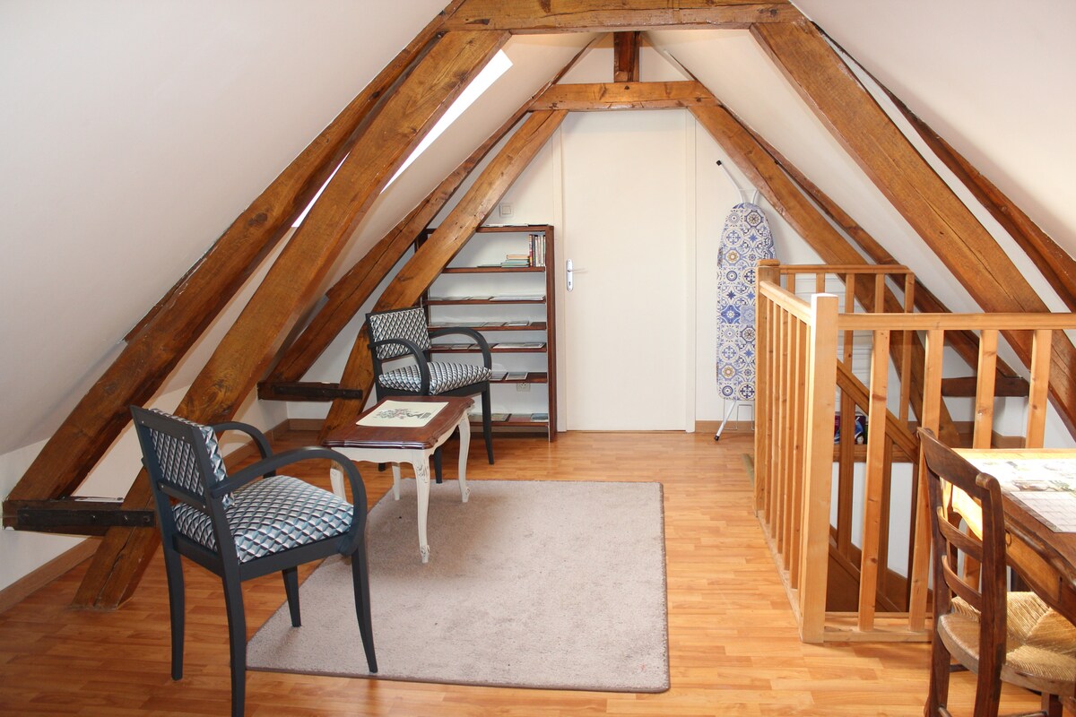 Salon étage avec poutres apparentes
