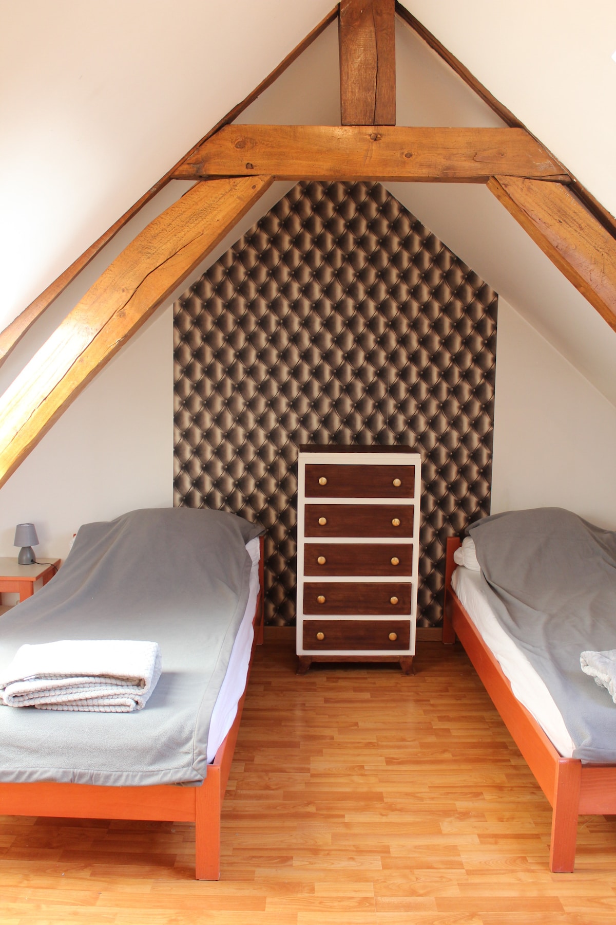 Chambre à deux lits simples sous combles
