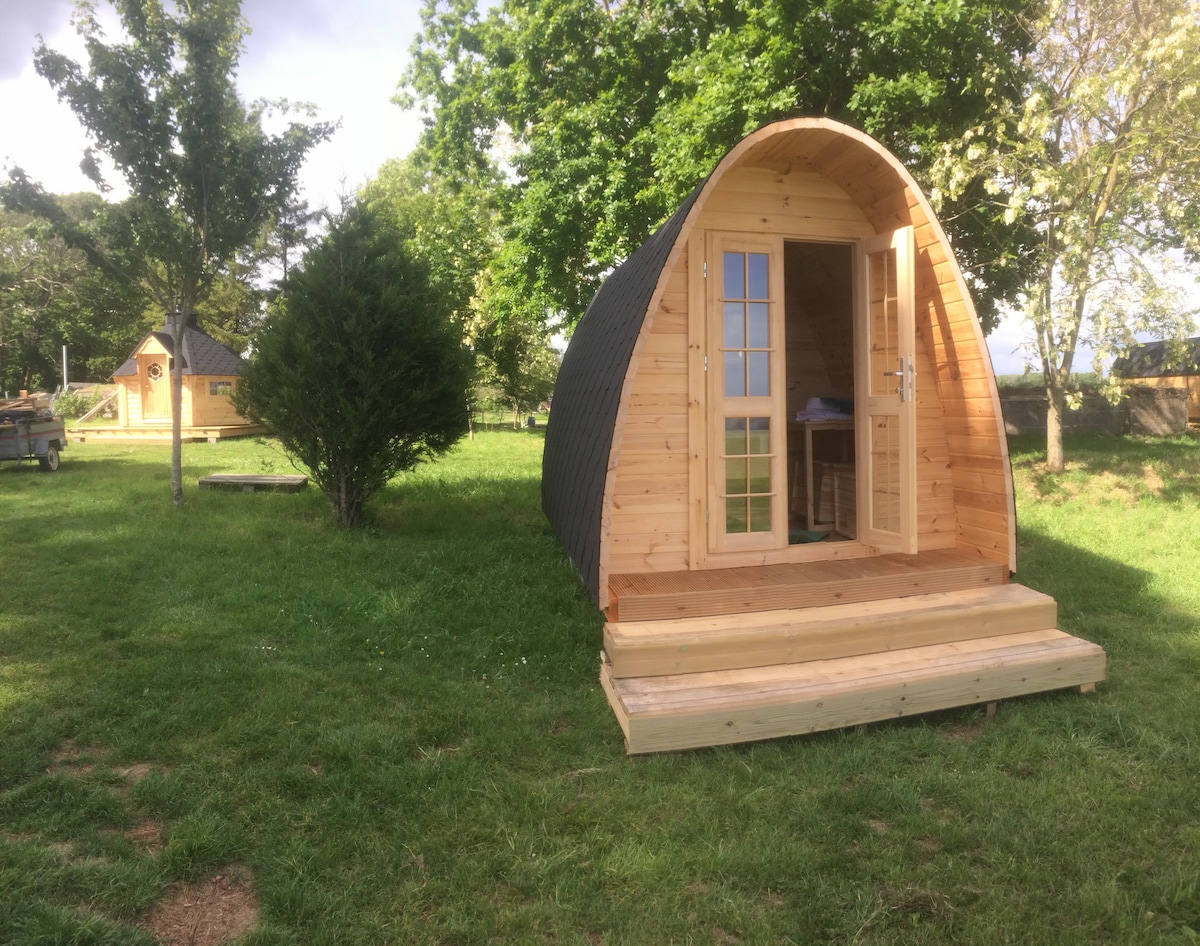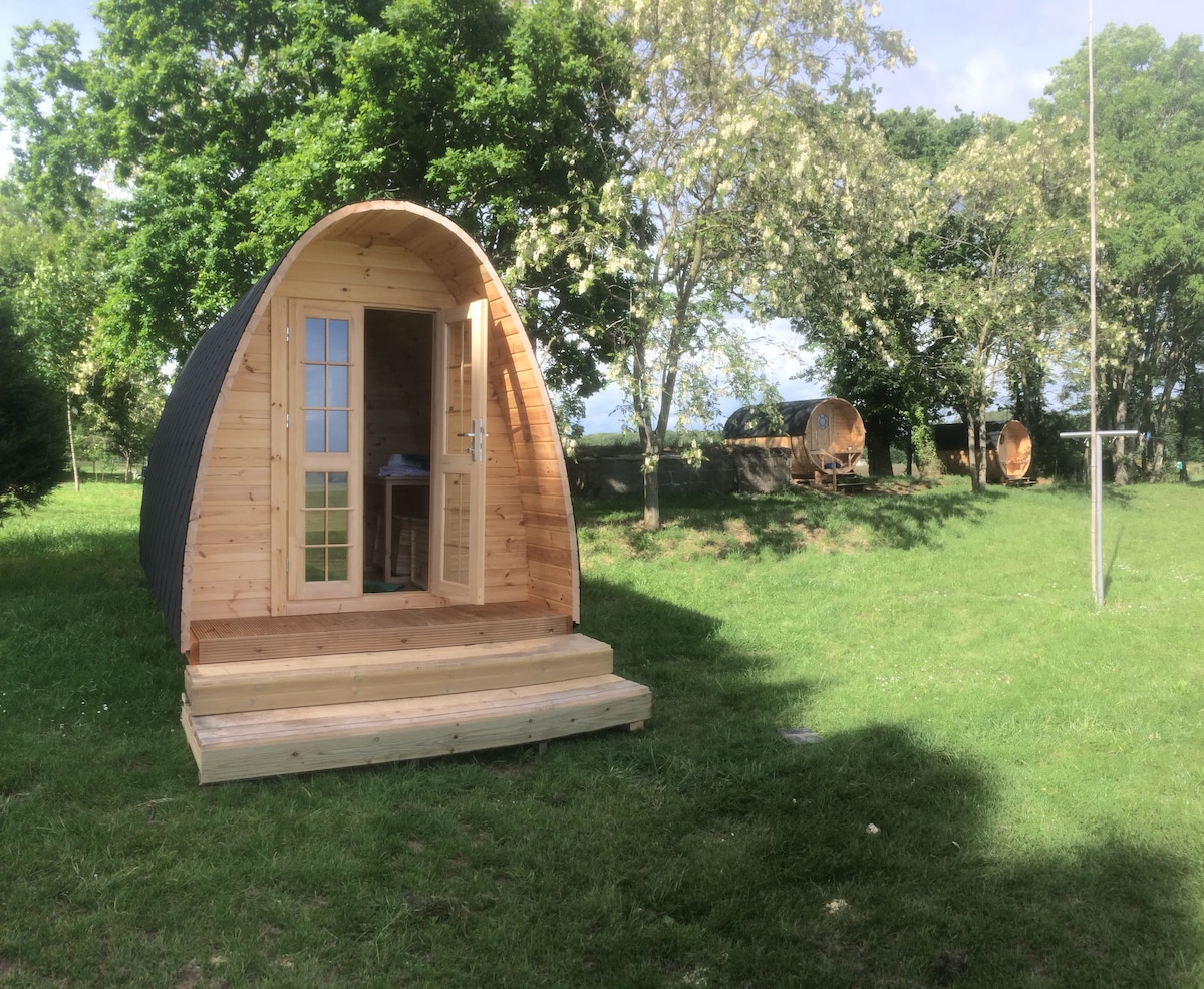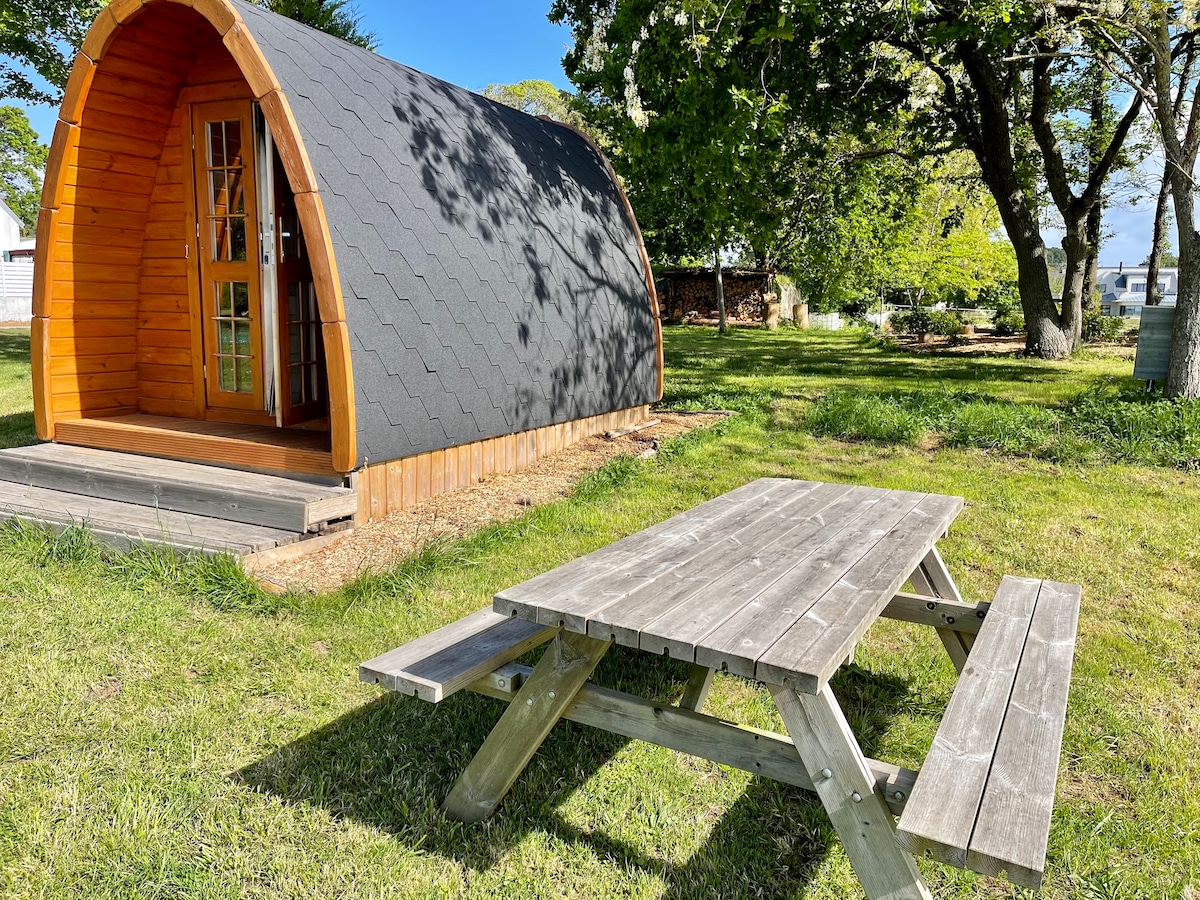 Extérieur clair et bien cadré montrant le pod dans son environnement. Attire l’œil.