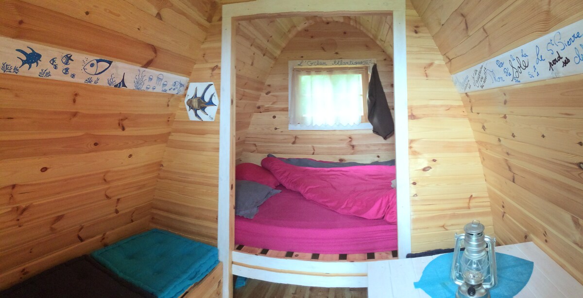 Photo intéressante car montre l'intérieur typique du pod. Lumière naturelle absente, aspect un peu sombre.