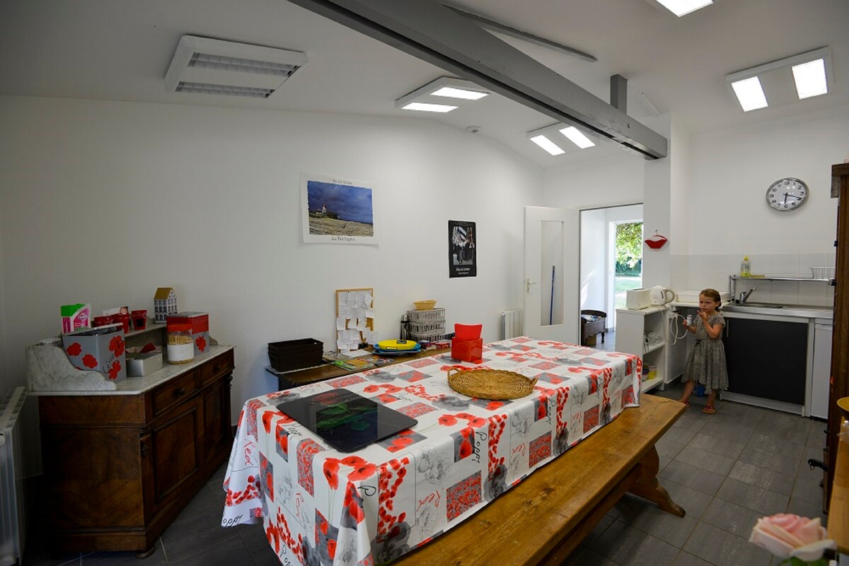 Photo de l’extérieur avec table pique-nique, met en valeur le côté convivial.