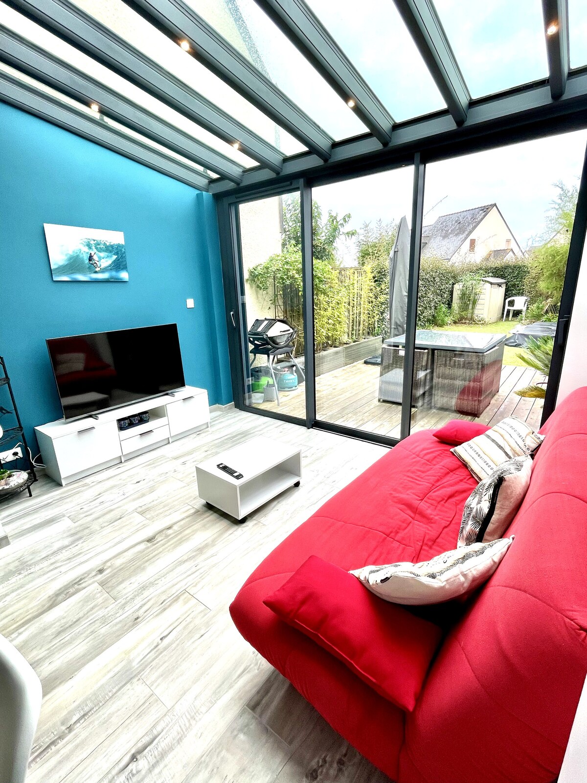 Très bonne luminosité naturelle, belle ouverture sur jardin, photo attractive et conforme à la promesse.