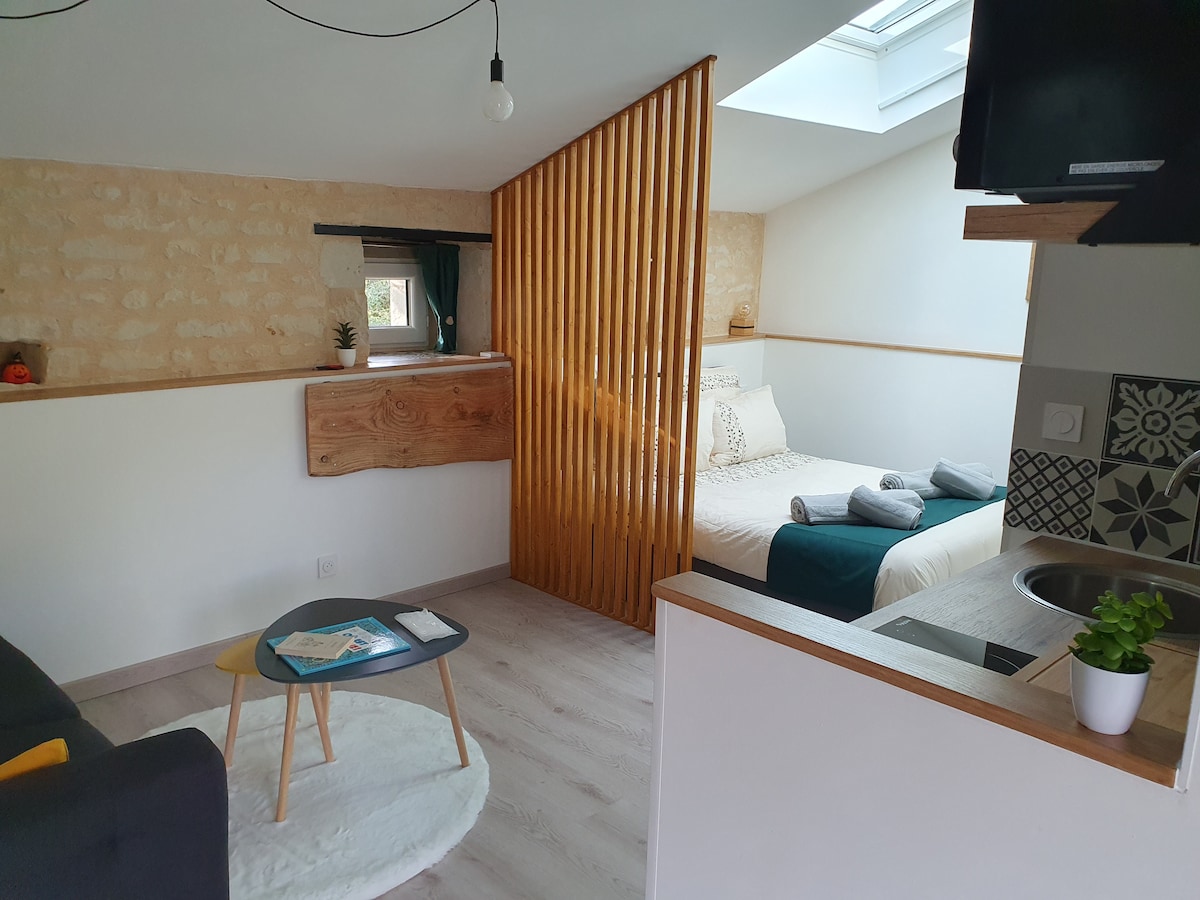 Photo claire mais manque un angle plus large pour mieux montrer la kitchenette fonctionnelle.