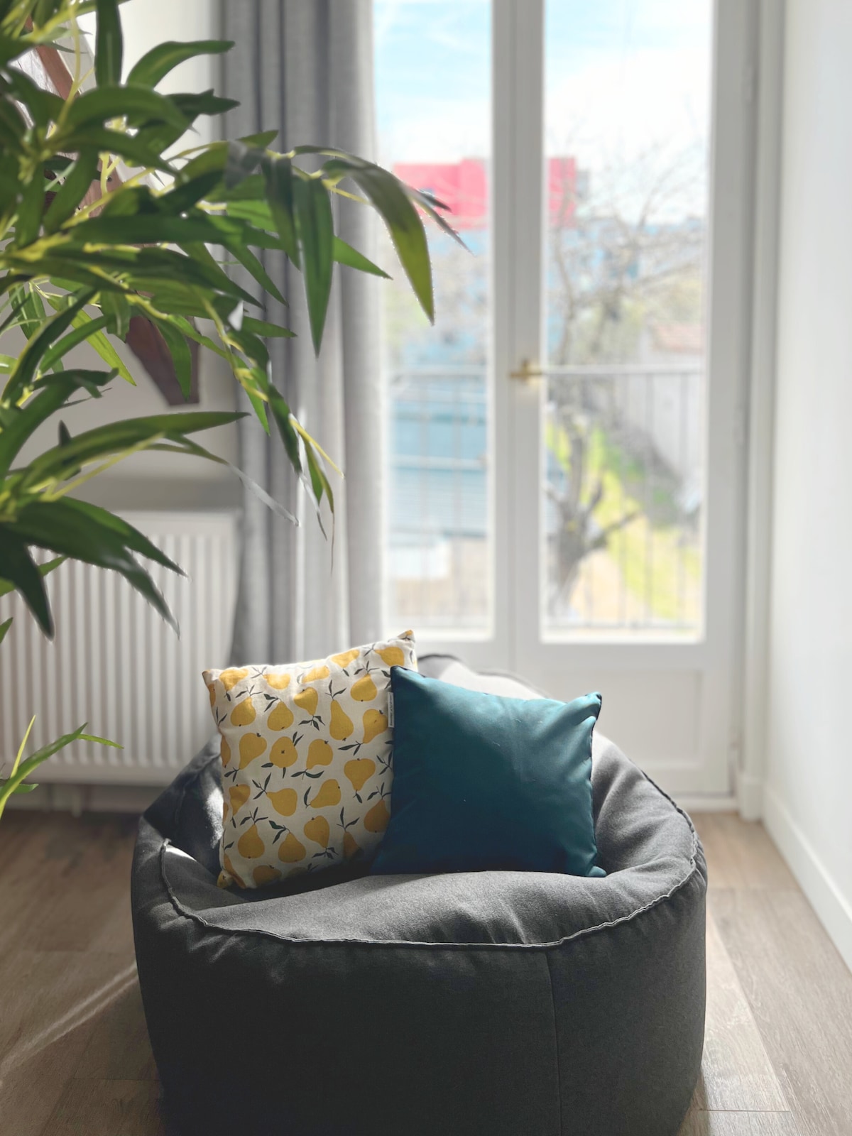 Photo claire, montre un coin cosy, bien décoré, très engageant.